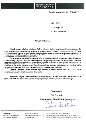 Rekomendacja Firmy Budokrusz, która przetestowała i stosuje dodatek z dobrym skutkiem.